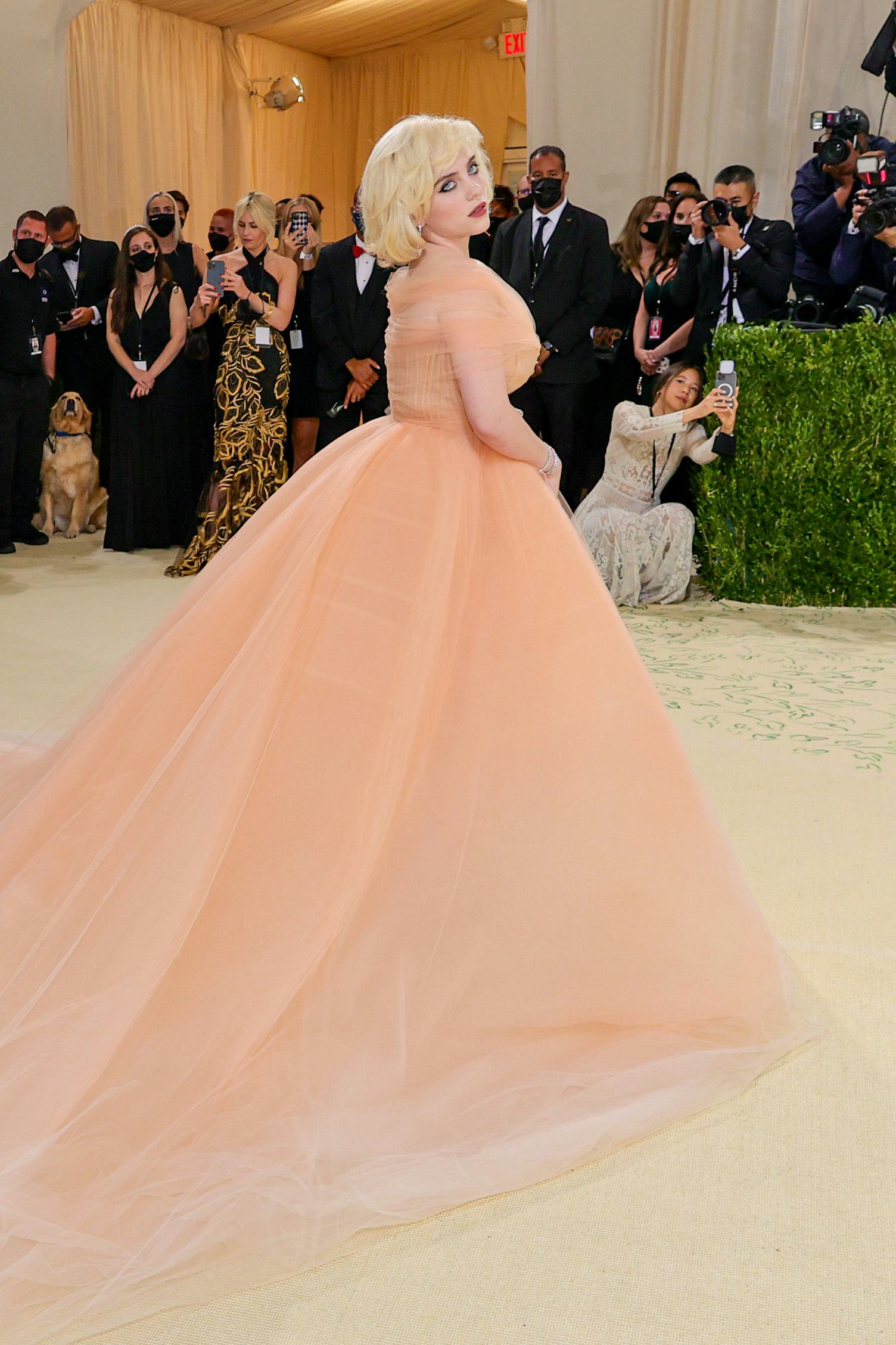 The pop star embodied a modern Marilyn Monroe vibe in a sexy blush cupcake gown complete with a bustier top and a massive tulle train it literally takes five people to lift. Billie Eilish is serving old Hollywood glam on the red carpet of the 2021 Vogue Met Gala which shes co-hosting on Monday evening Sept. Search these featured Designers below to find the perfect dress below and thenContact Us for a Personalized Appointment.